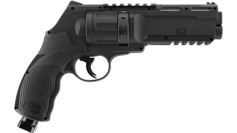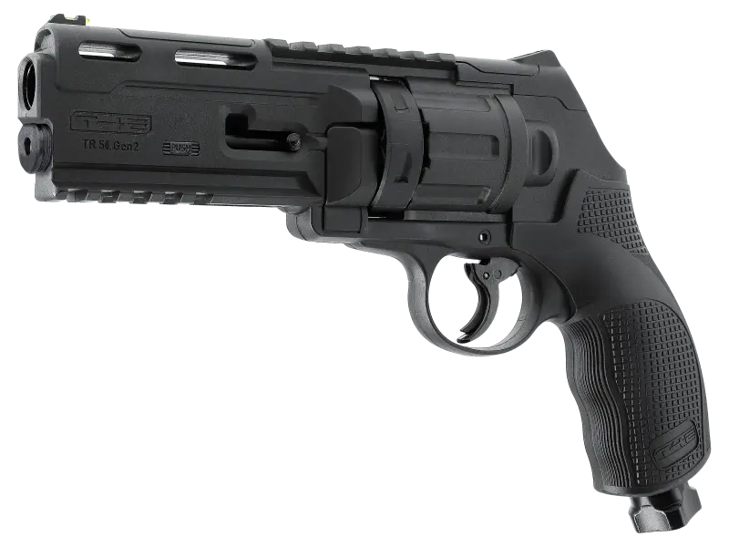 Le TR 50 Gen2 en calibre .50 délivre 13 J et adopte le système Quick-Piercing sans outil avec purge intégrée. Un léger coup sous la poignée perce la cartouche CO2 12 g et l’indicateur de pression visible et tactile confirme l’état prêt. La 2e génération améliore la prise en main et la précision grâce à une poignée optimisée et une visée fibre optique. Les rails Picatinny permettent le montage d’accessoires et la sécurité de détente limite tout départ involontaire.